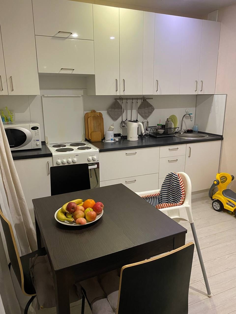 Продается 1 комнатная квартира в Южном Бутово. 7 этаж, балкон, с/у раздельный, большая кухня. Очень удобное и комфортное расположение относительно основных потребностей: 3 минуты ходьбы до метро Бунинская Аллея; 2 минуты детский сад и школа. Окна и балкон выходят во двор с видом на школу, д.сад и парк. С балкона прекрасно видны праздничные салюты в честь особых праздников Москвы. Вид с балкона приятный, строительство в геплане не предусмотрено. Хорошие соседи. Близко расположены два бассейна, новый фитнес центр (5 минут ходьбы) современный парк с огромным количеством детских, спортивных и развлекательных площадок, пруд с лодками и площадкой для шашлыков. Рядом поликлиника, множество магазинов!  В квартире остаётся новый кухонный гарнитур.