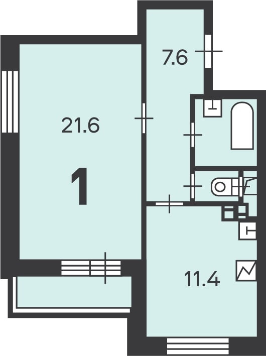 Жилая площадь 21.6 м2