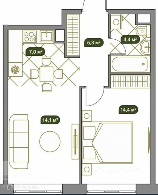 Общая площадь 45 м2