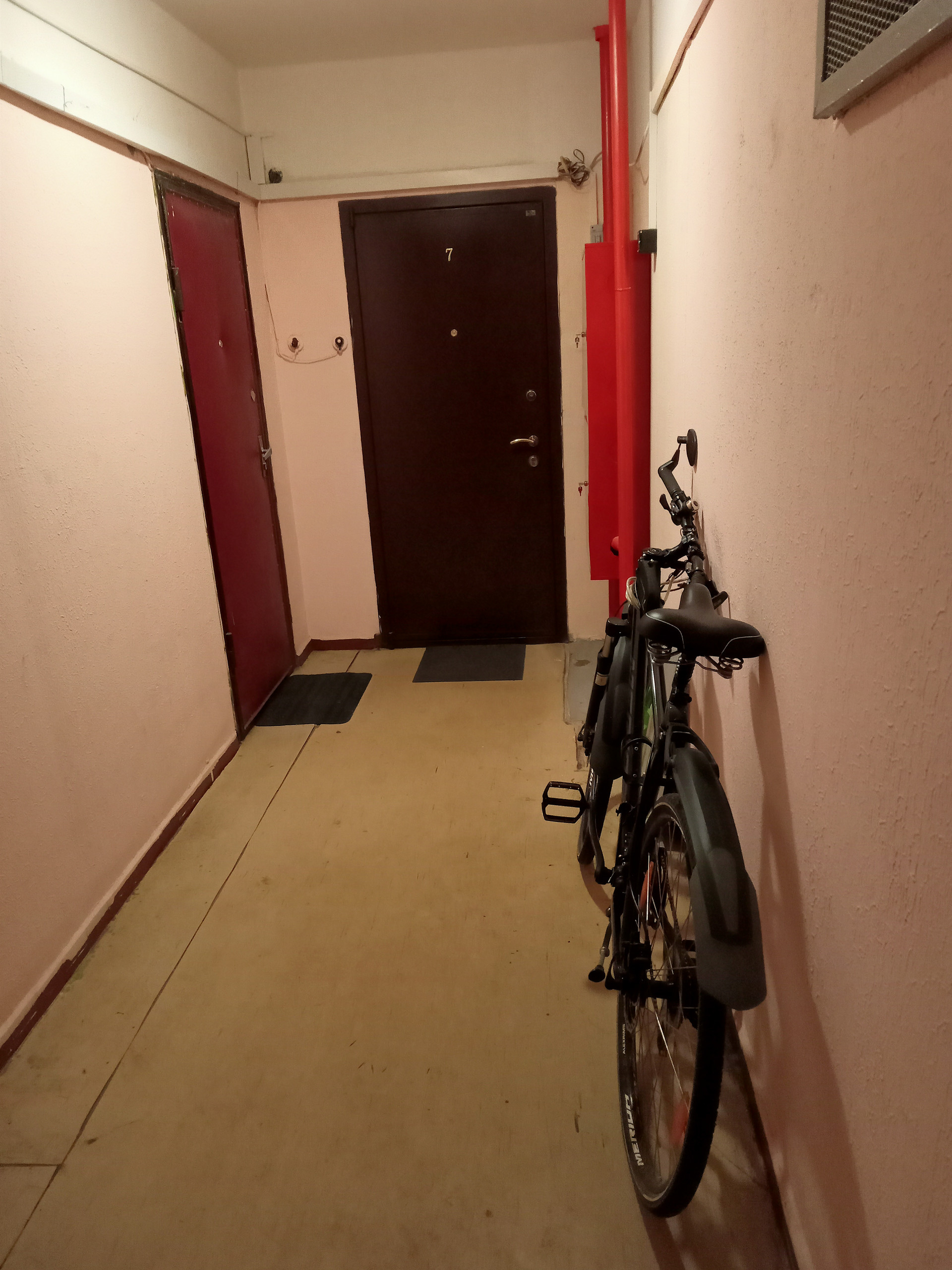 Перед входом в квартиру расположен большой закрытый тамбур на 2 квартиры.