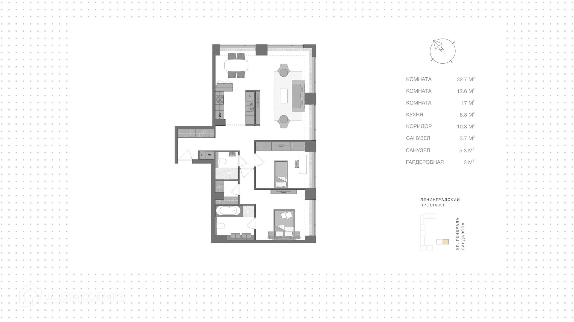 2-комнатная квартира, 91 м2, этаж 8 / 41, на продажу в Москве, Ленинградский проспект, 37/3