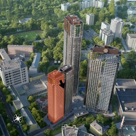 Авторская архитектура. Она вобрала лучшее от современных высоток, что выгодно выделяет проект среди других многоэтажных зданий, но при этом гармонично вписывает его в сложившуюся застройку района.