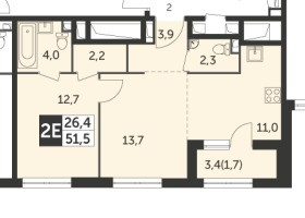 Общая площадь 52 м2