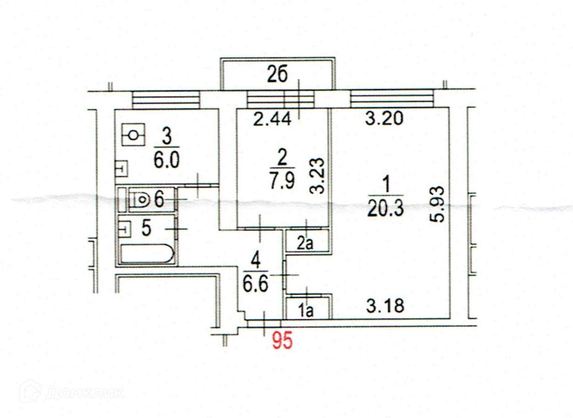 Общая площадь 44.8 м2