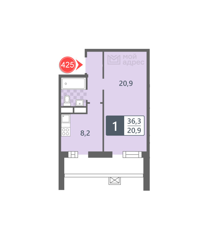 Общая площадь 36 м2