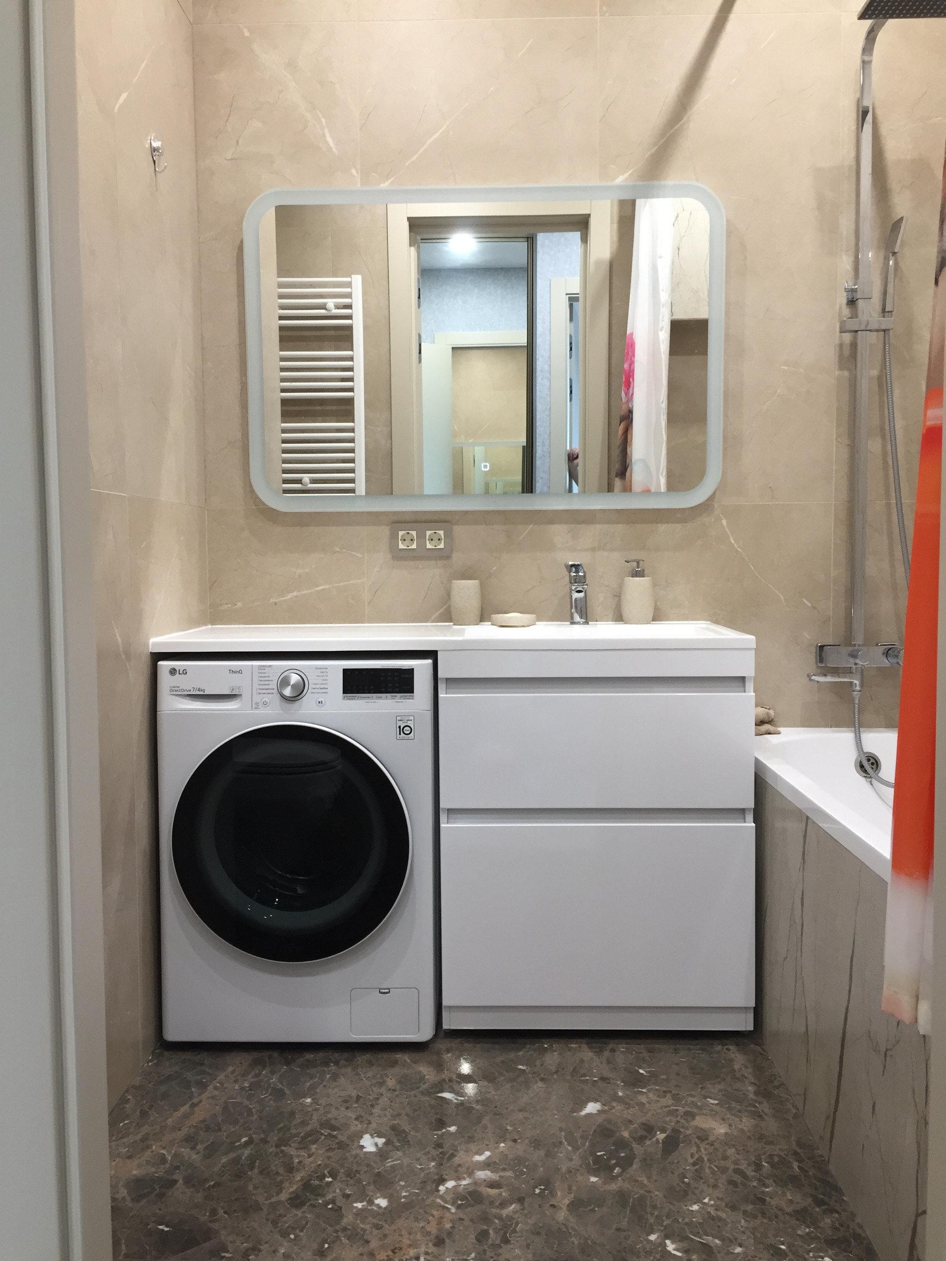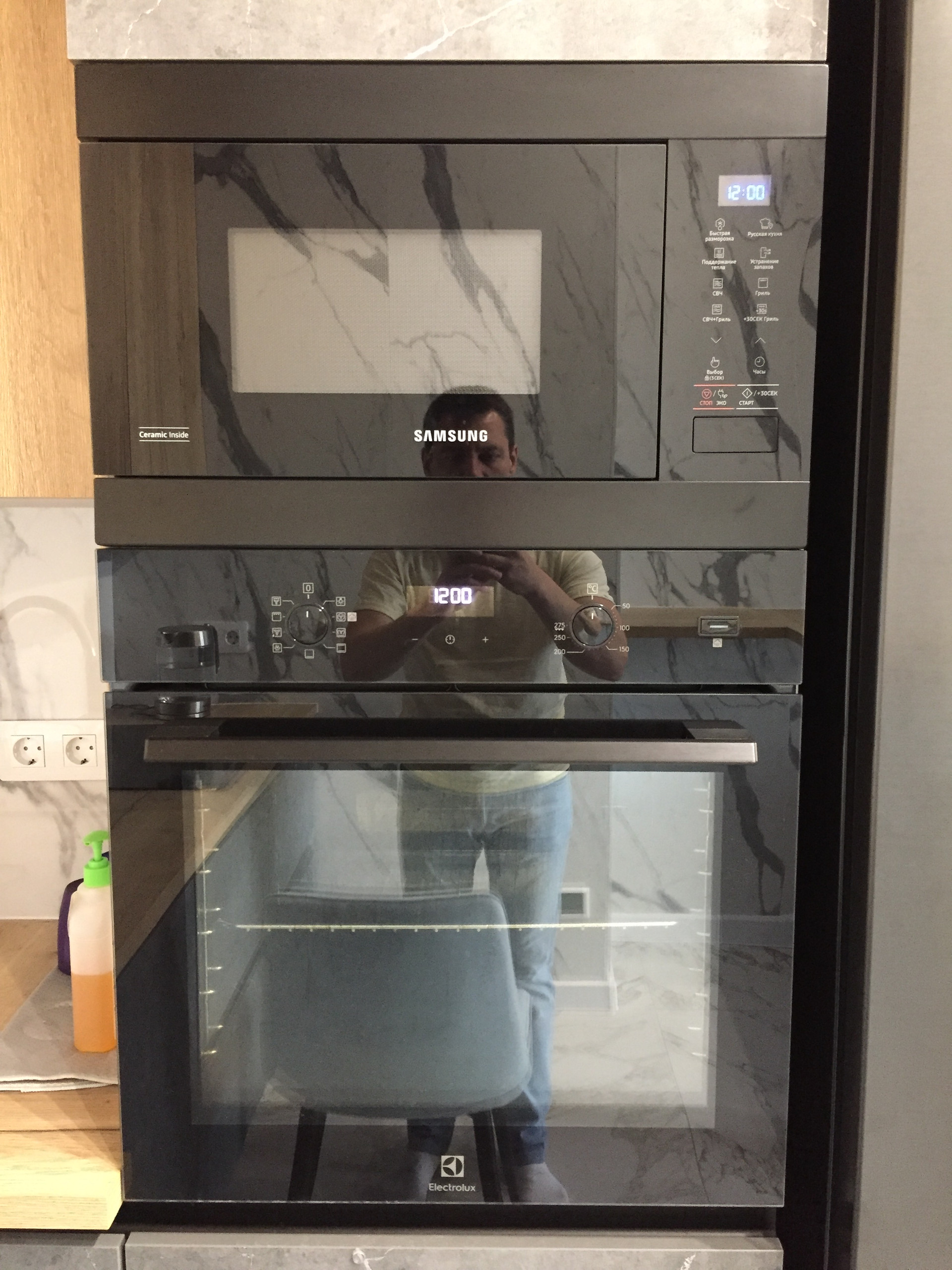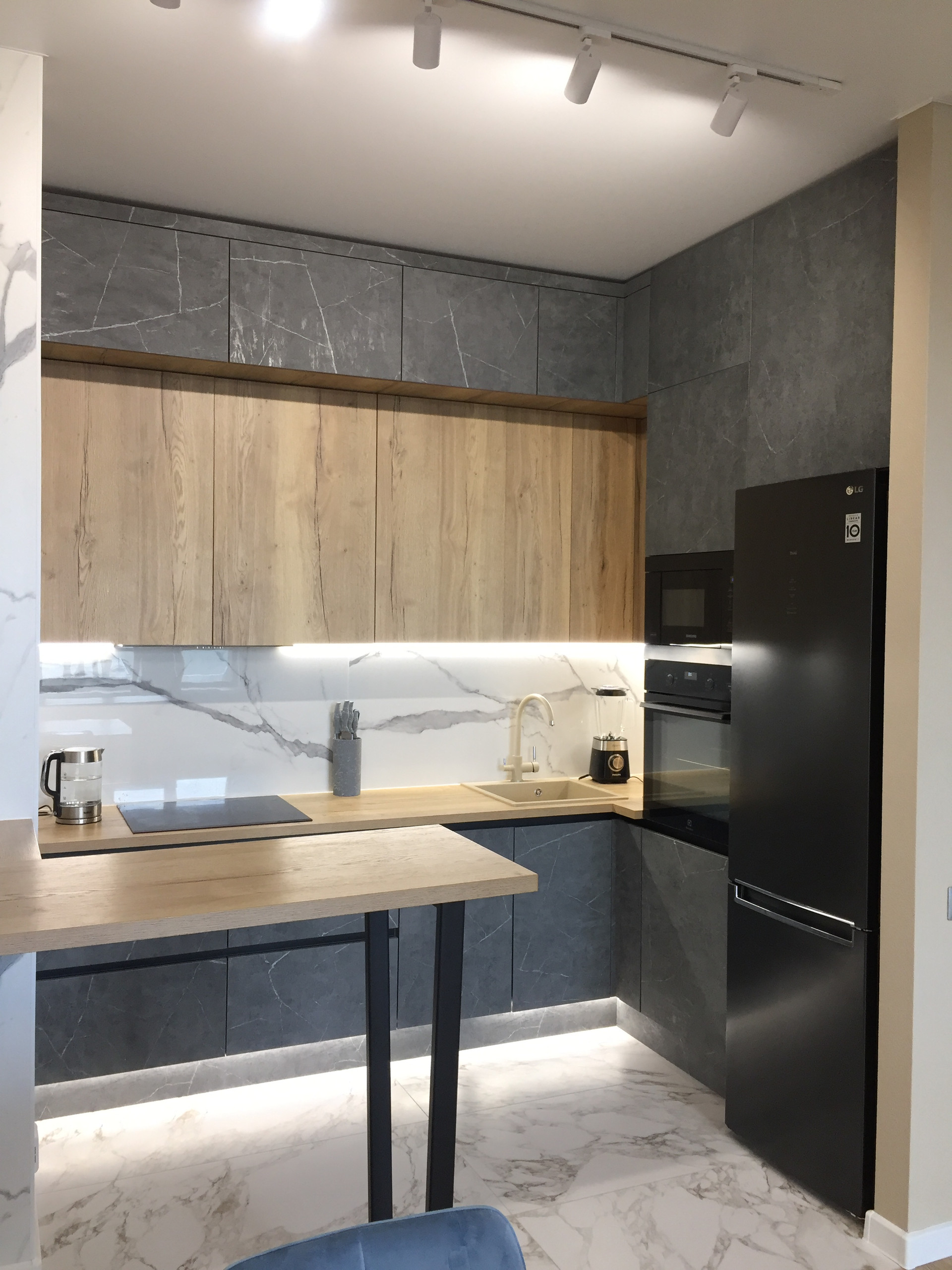 1. Кондиционер- Haier Flexis; 2. Cтиральная машина с сушкой 2в 1 LG AI DD; 3. Индукционная плита Electrolux IPE6455KF; 4. Посудомоечная машина Bosh Seria 6 SPV6HMX3MR; 5. Духовой шкаф с функцией пара Electolux OED5C50Z; 6. Микроволновка Samsung MG22M8054AK; 7 Вытяжка Maunfeld; 8. Холодильник LG.