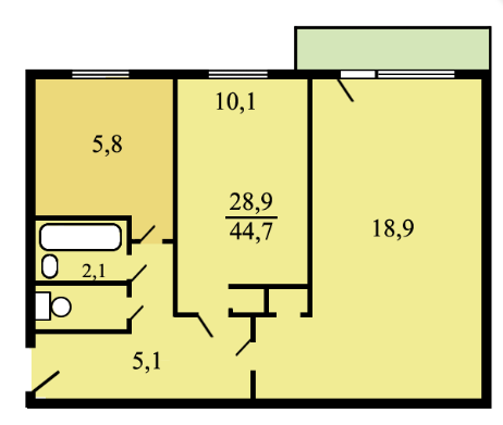 Общая площадь 45 м2