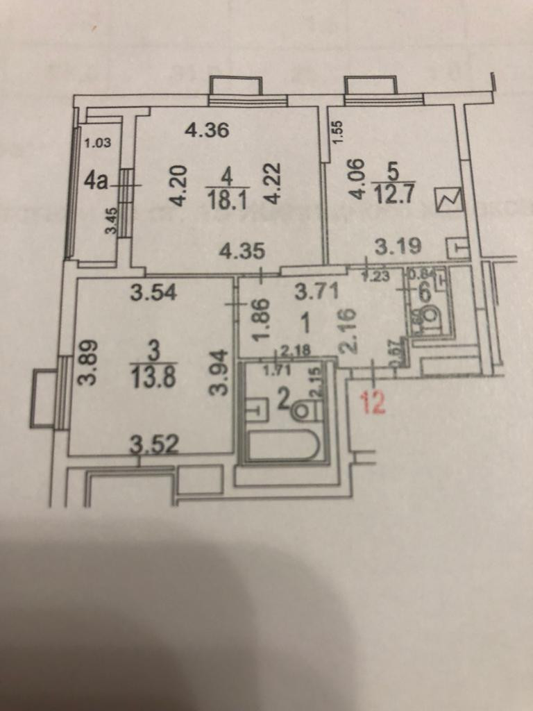 4 этаж, комнаты 17,9 и 14 кв.м , кухня 12 кв.м, два сан узла, потолки 2,77 м , застекленная лоджия,