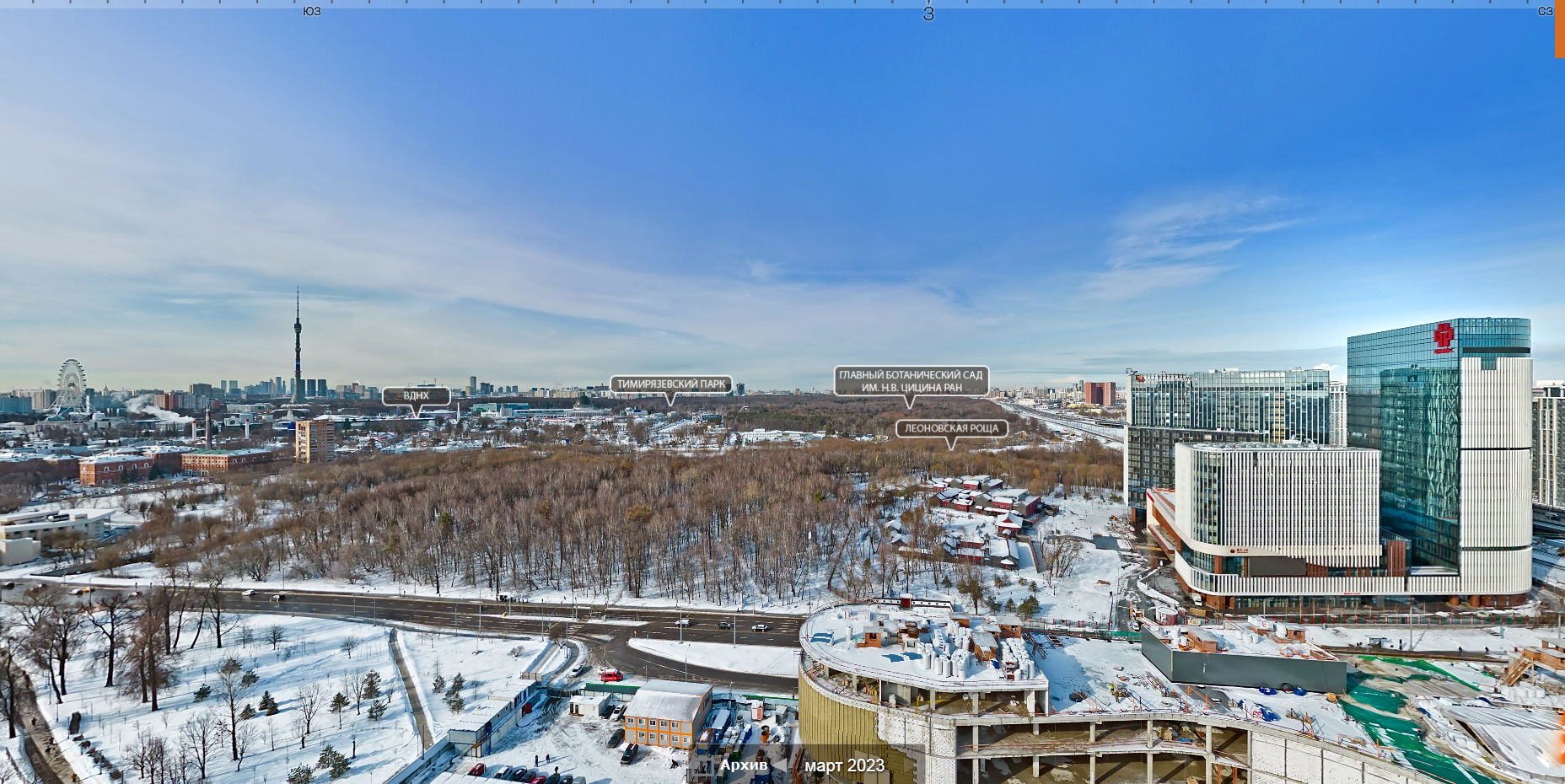 Большое панорамное окно выходит на юго-запад, в сторону ВДНХ и Ботанического сада,