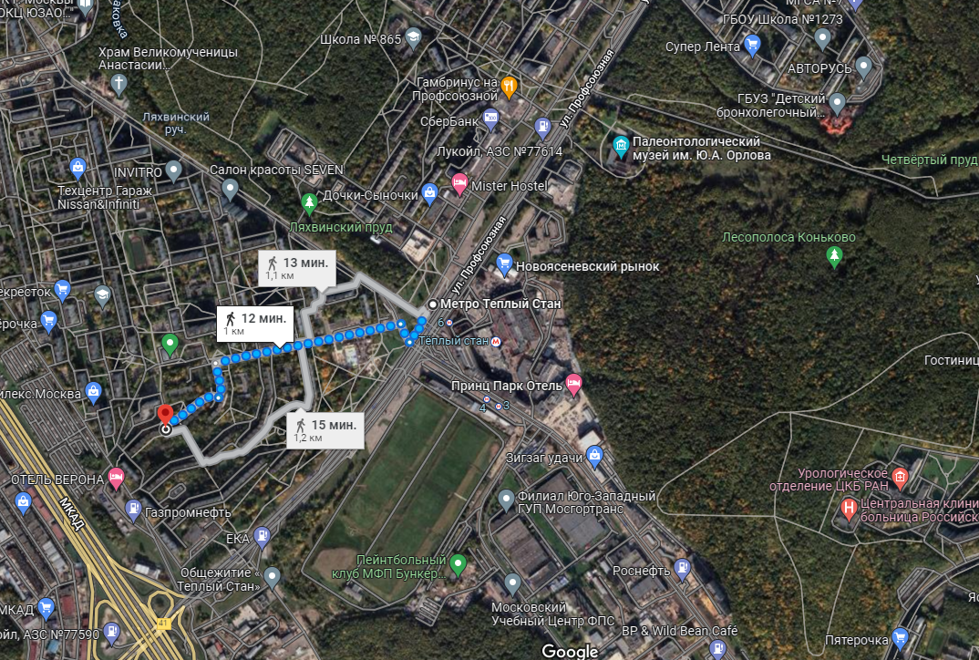 Расположение: 12-15 минут пешком к ст. метро Теплый стан, рядом продуктовые магазины, гимназия, школы, детский сад, лесопарковые зоны.