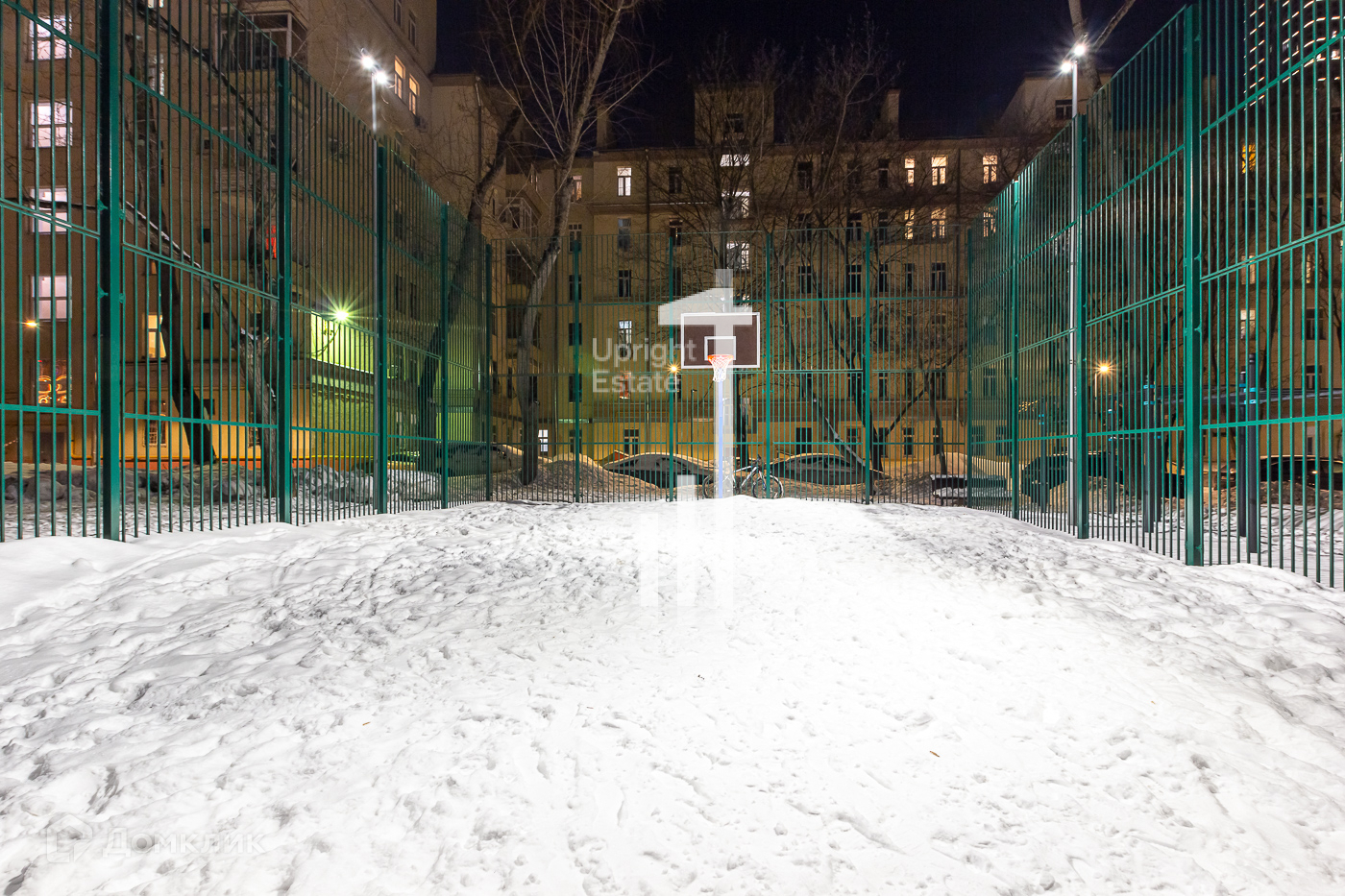 Во дворе спортивная площадка, благоустроенная зеленая зона для отдыха, детская площадка.