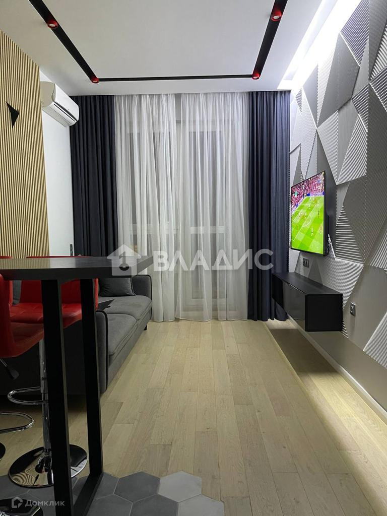Со встроенной дорогой техникой, телевизорами, мебелью, шторами.