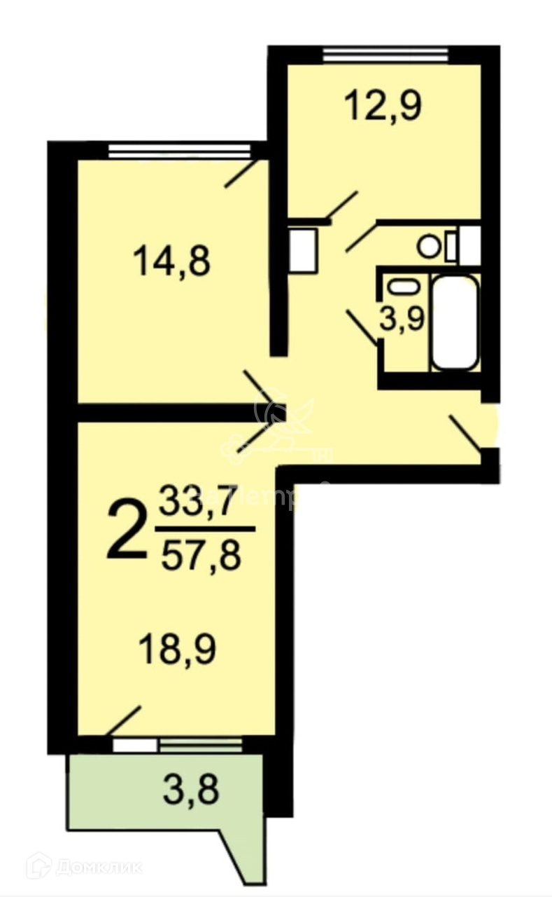 Жилая площадь 33.7 м2