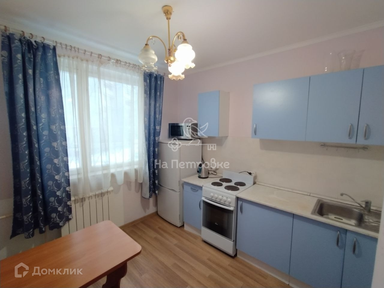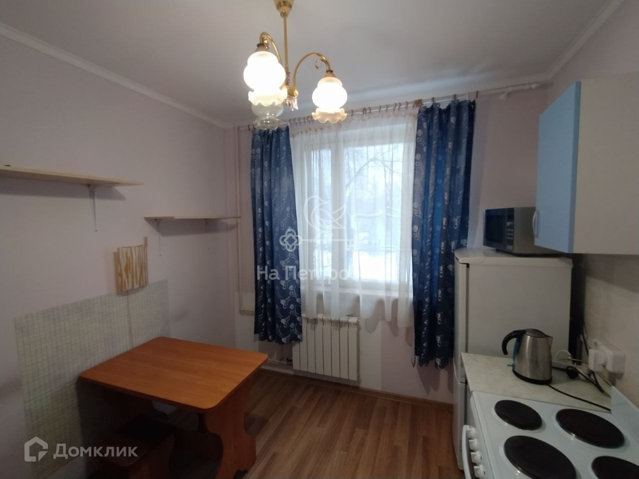 Просторная кухня. Вся мебель остаётся.  Раздельный санузел. Перепланировок нет.