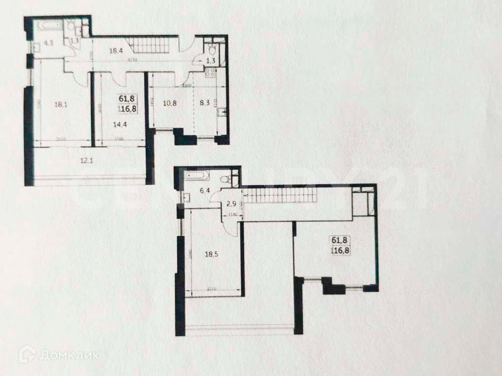 Жилая площадь 61.8 м2
