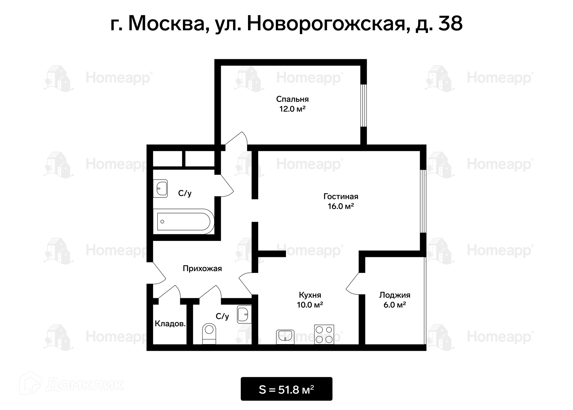 Общая площадь 51.8 м2