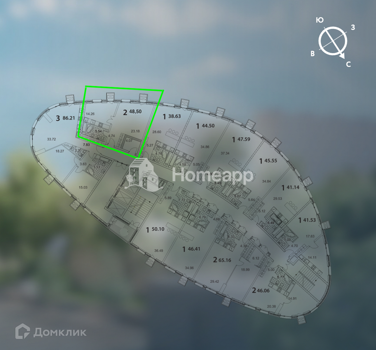 Общая площадь 48.5 м2