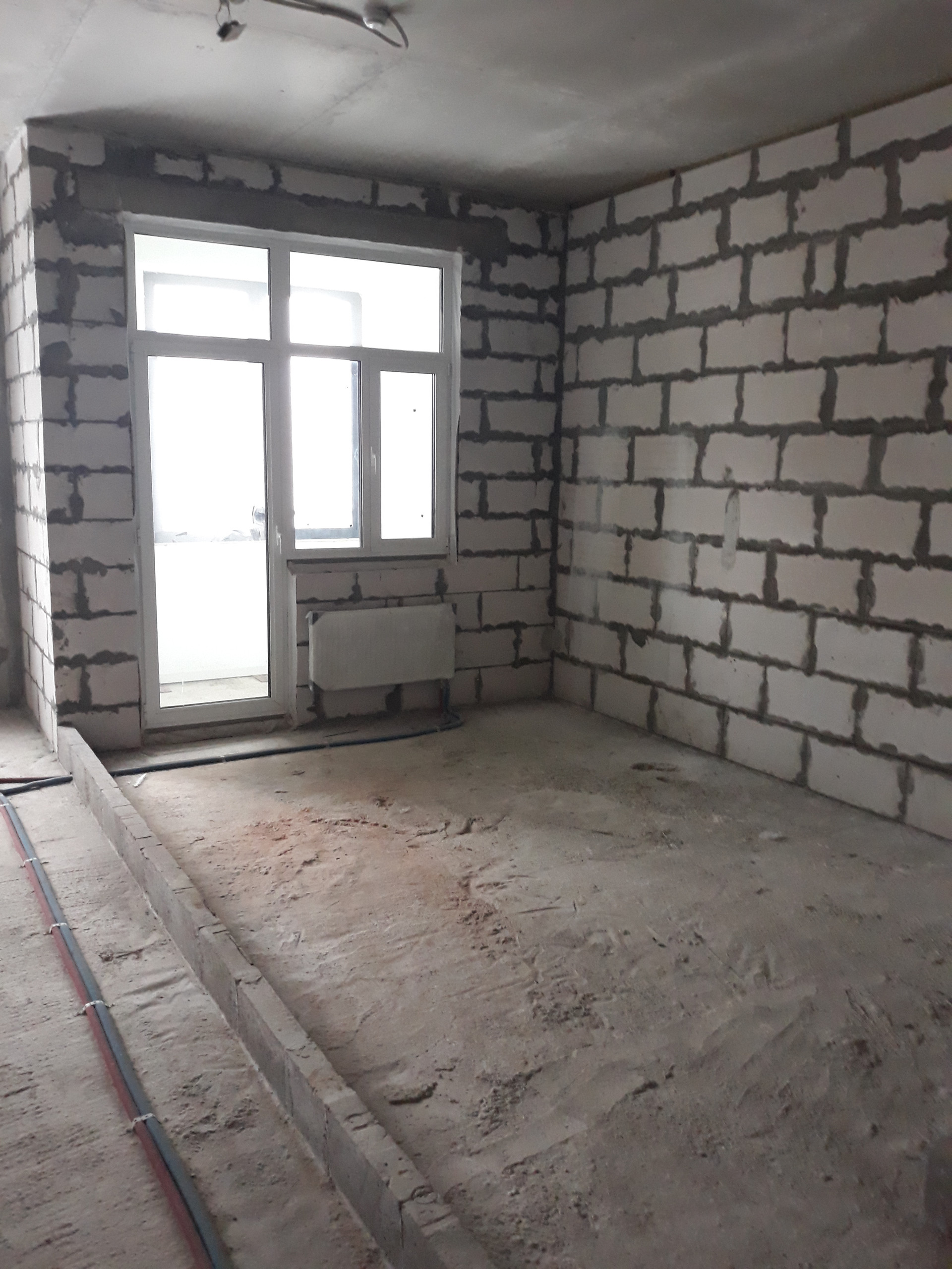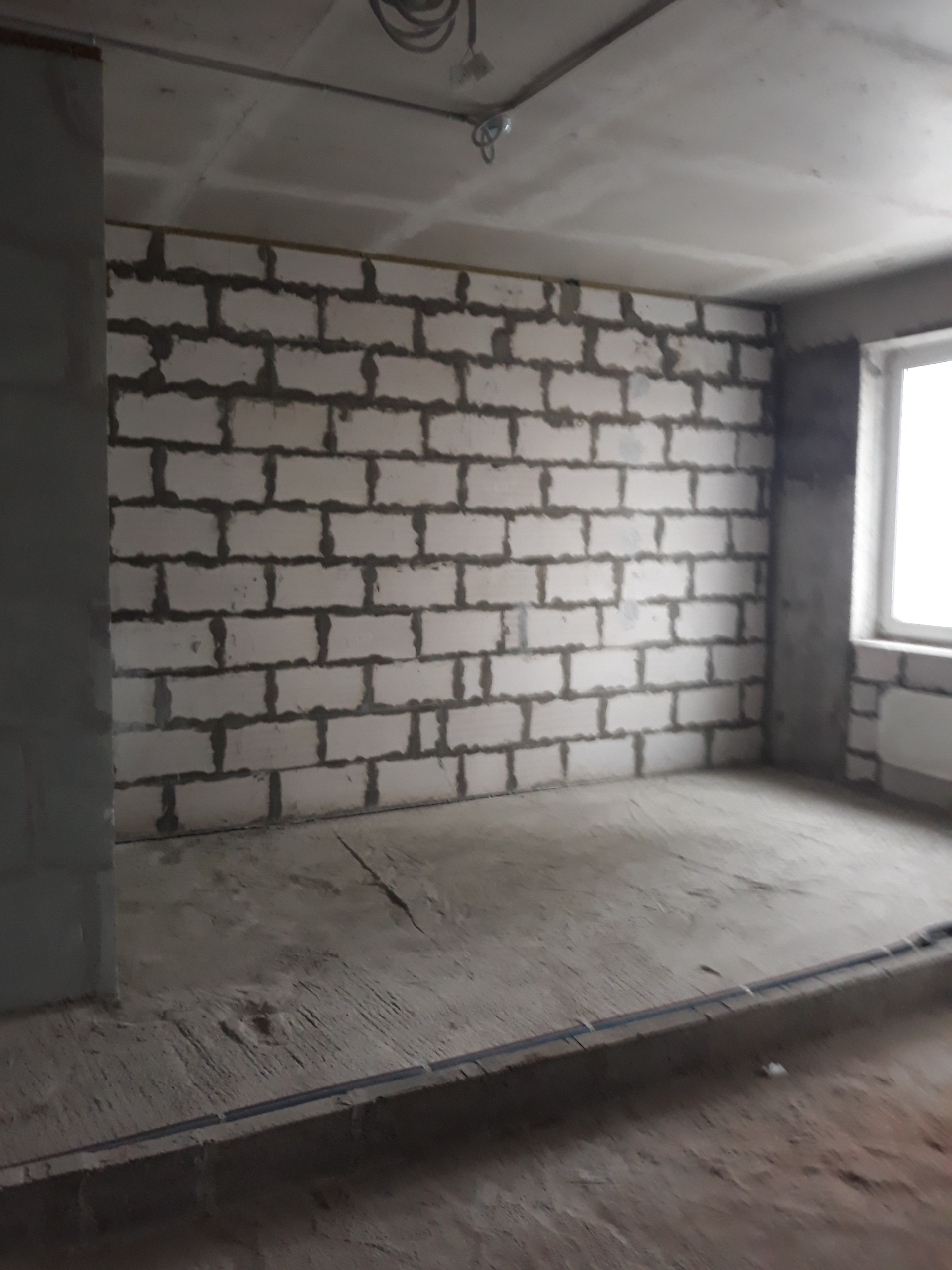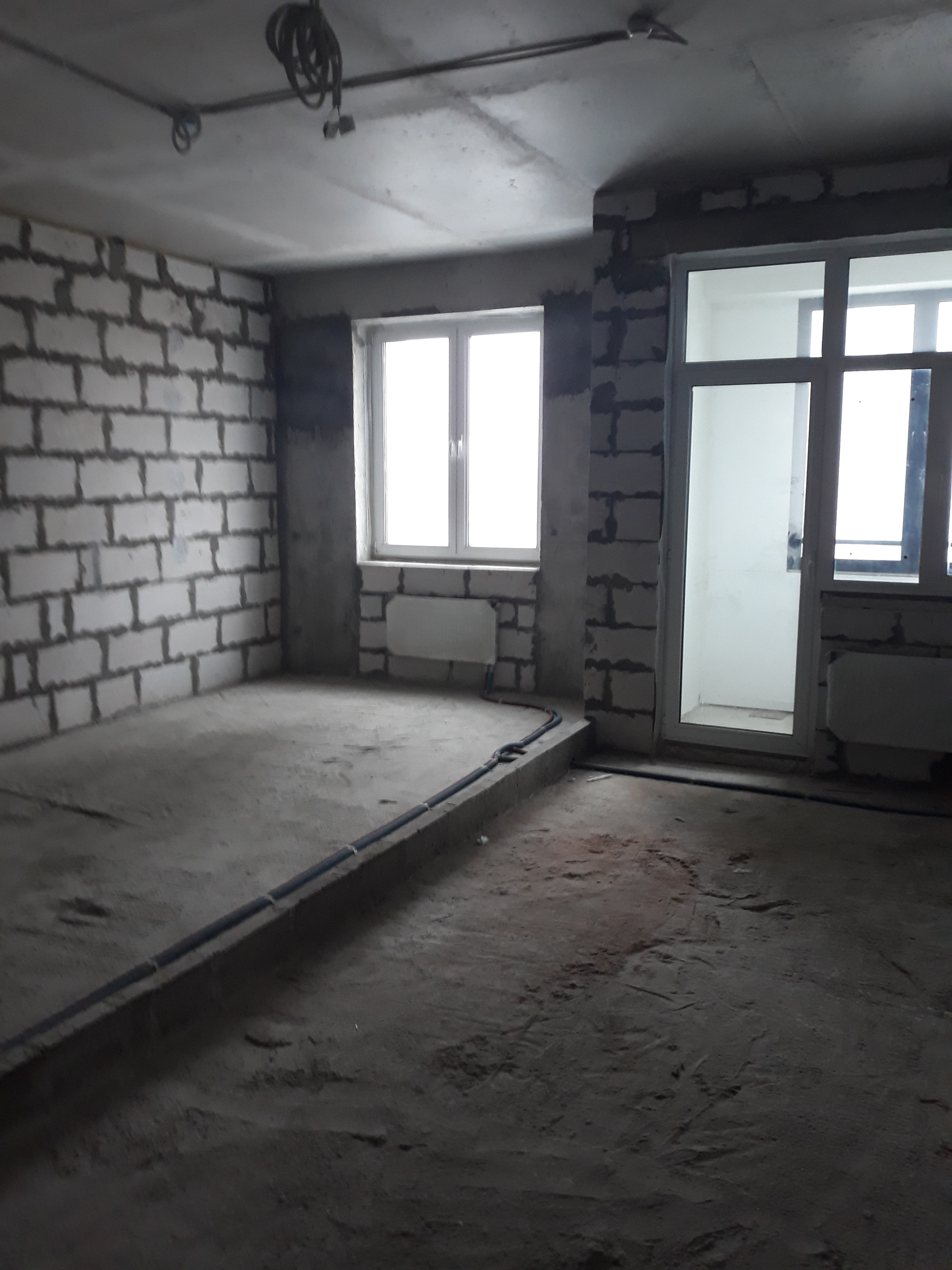 Квартира без отделки («бетонная коробка» без внутренних перегородок). Высота потолков — 3.2. Окна квартиры выходят в сторону корпуса «С» и ЖК «Приват-Сквер».