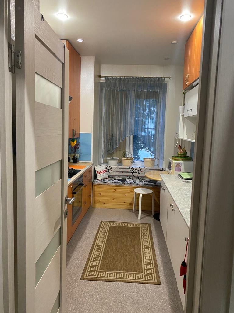 Площади комнат (изолированные): №1- 12 кв.м., №2 – 13 кв.м., №3- 19,7 кв.м., №4- 16,5 кв.м. Окна 1,2,3 комнат выходят на улицу, окно 4-й комнаты, кухни и ванной выходят в тихий дворик. Кухня 9,1 кв.м. оснащена всем необходимым современным оборудованием. Санузел раздельный (ванная 3,5 кв.м.; уборная 1,1 кв.м.). В прихожей (12,7 кв.м.) установлены встроенные ниши для хранения. Своя парковка во дворе «за шлагбаумом».