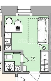 Квартира студия, 16.6 м2, этаж 2 / 4, на продажу в Москве, Смоленская-Сенная площадь, 27с7