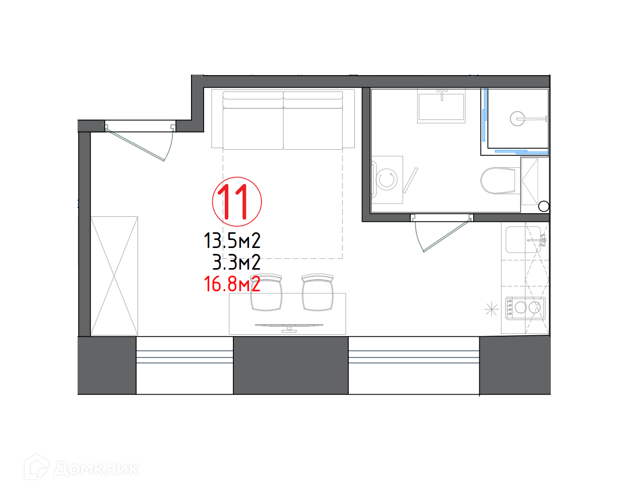 Общая площадь 16.8 м2