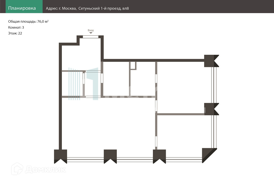 Общая площадь 76 м2