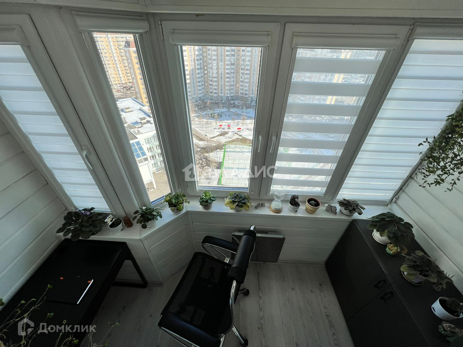 Балкон сделан под рабочий кабинет с теплым полом, дополнительным остеклением. Пригоден для использования круглый год, отделан деревом.