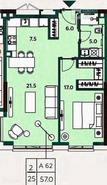 Общая площадь 57 м2