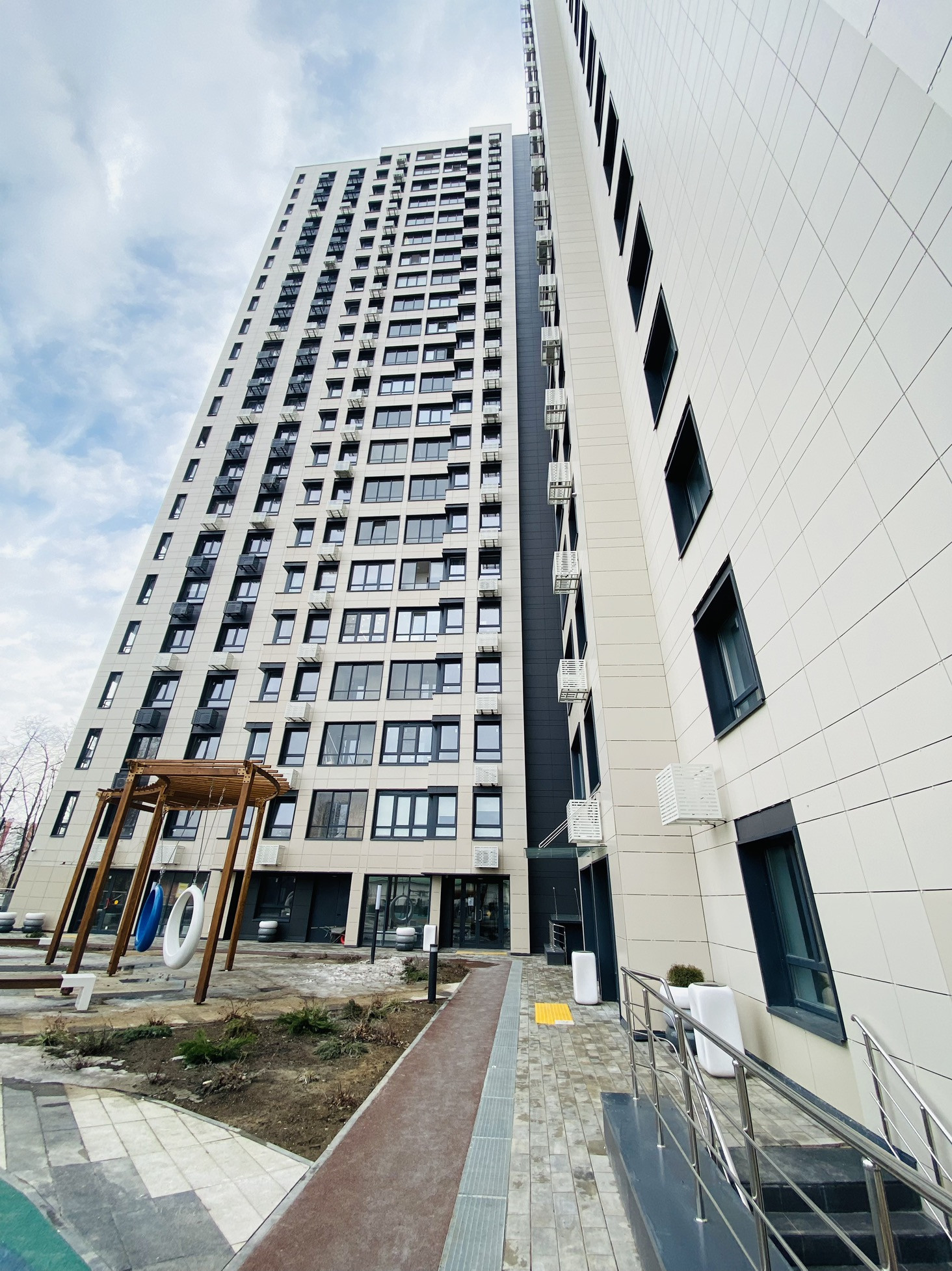 В соседнем дворе находятся школа и детский сад.