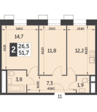 Количество комнат 2