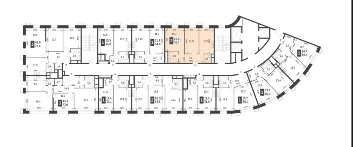 Общая площадь 52.2 м2