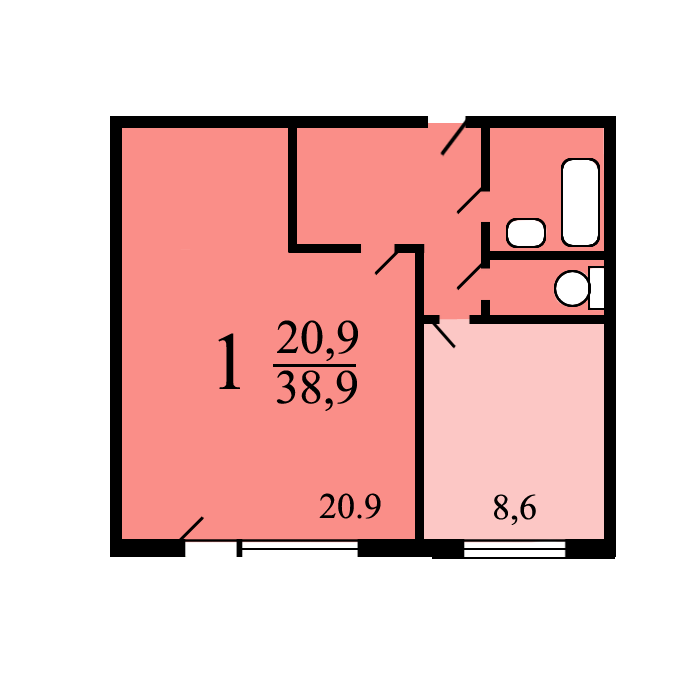 Жилая площадь 20.9 м2