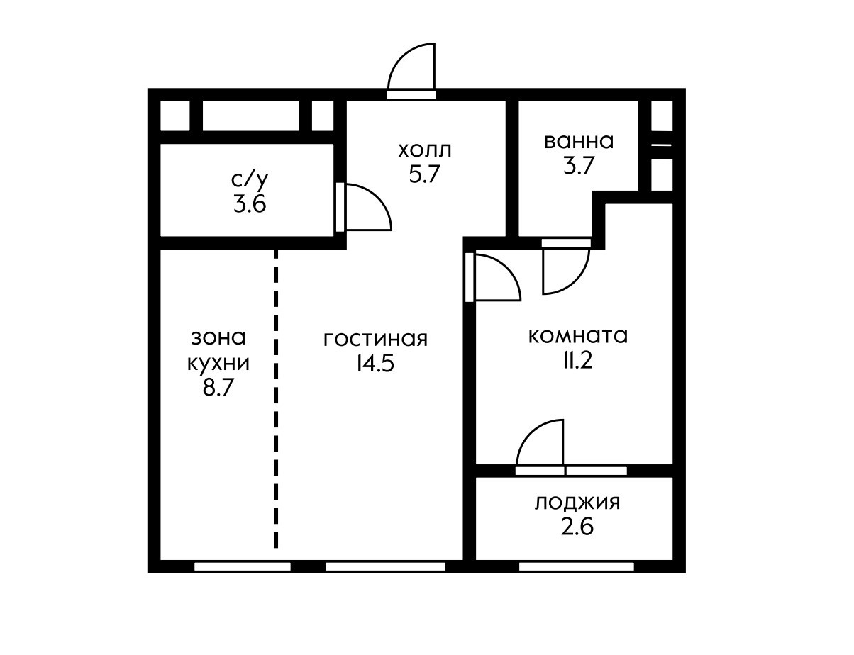 Жилая площадь 25.7 м2