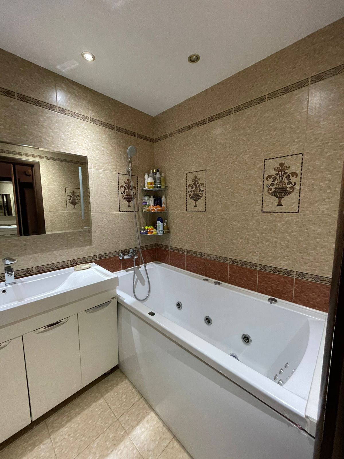 - просторный совмещенный с/у с ванной -джакузи, которая заказывалась по индивидуальные размеры. Ванная глубокая и удобная, что является преимуществом;