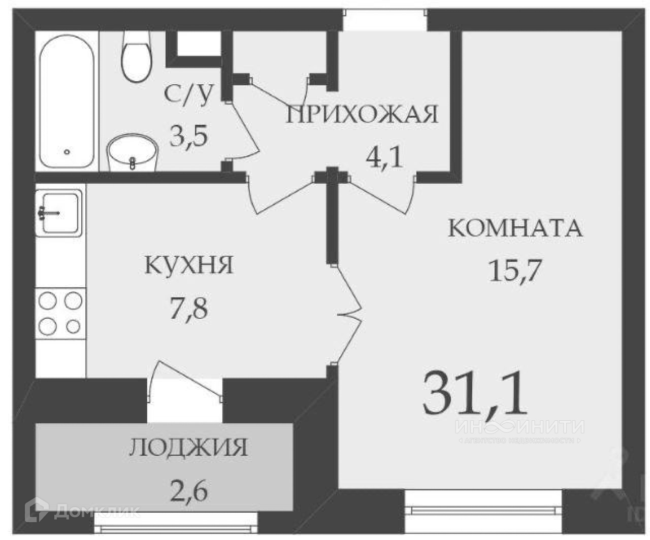 Общая площадь 32.4 м2