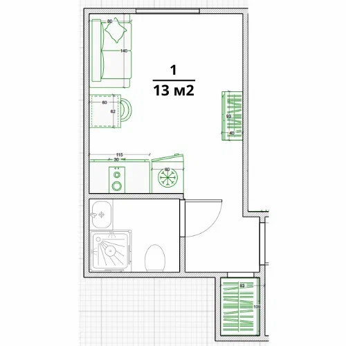 Общая площадь 13 м2