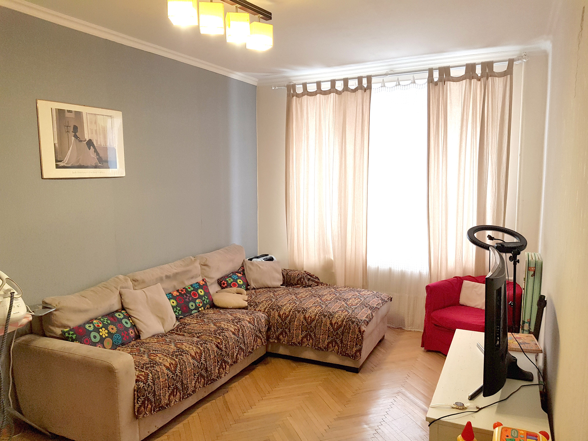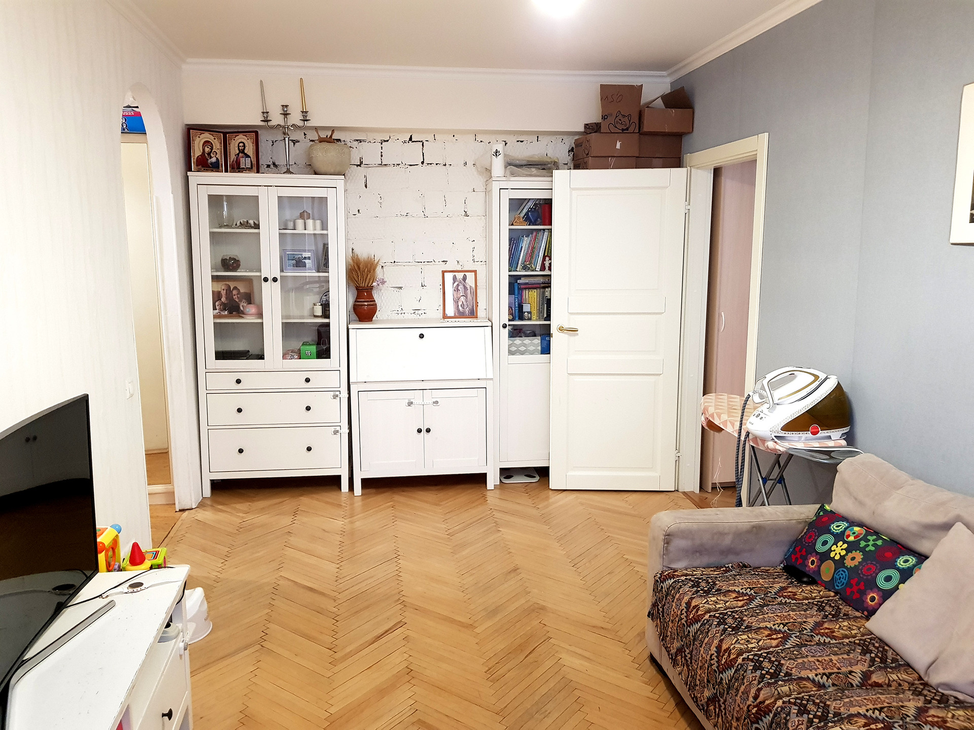 Уютная «трешка» в кирпичной поздней «сталинке» с ремонтом в престижном районе на Юго-Западе Москвы. Отдельная спальня с балконом, гостиная смежная со второй спальней, у которой два окна, обращенные на восток во двор. Квартира чистая с ремонтом в классических светлых тонах. Пространство квартиры организовано максимально практично и функционально, без лишних неиспользуемых метров. Перепланировок не было.