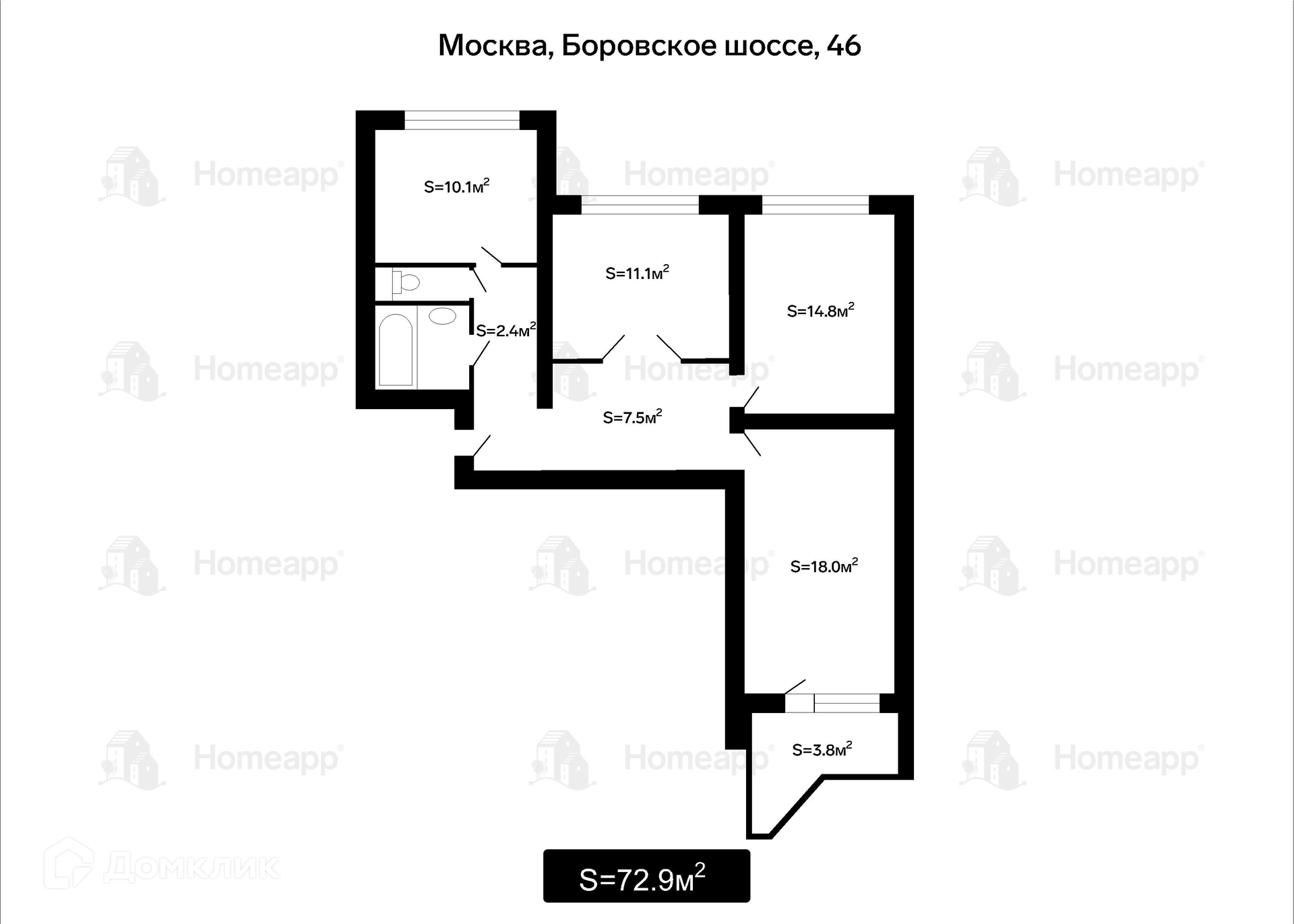 Общая площадь 73.8 м2