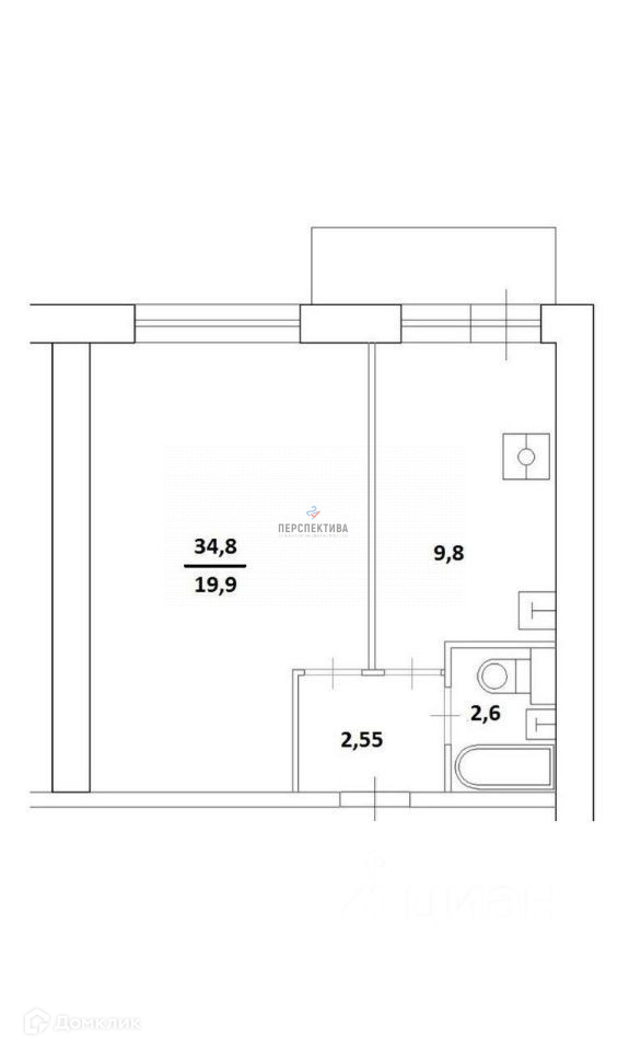 Жилая площадь 19.9 м2