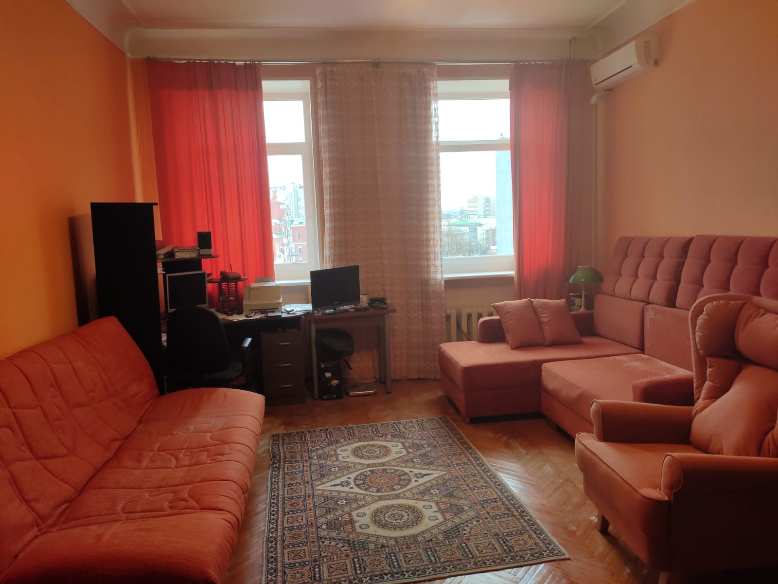 Просторная, светлая квартира, окна на две стороны: на двор (кухня 13.2 и комната 25.6 - 3 окна, восток)  и на бульвар перед фуд-кортом "Депо Лесная" (комната 17.4 -1 окно, запад). В квартире большая кладовка и стенной шкаф. Потолки 3.3 м. Газовая колонка. Перекрытия смешанные. Перепланировка не делалась, но возможна. Квартира требует ремонта.