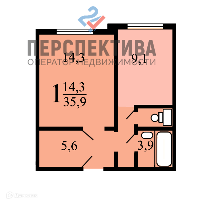Общая площадь 35.9 м2