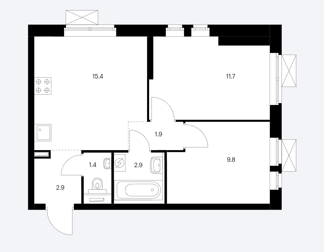 Общая площадь 46 м2