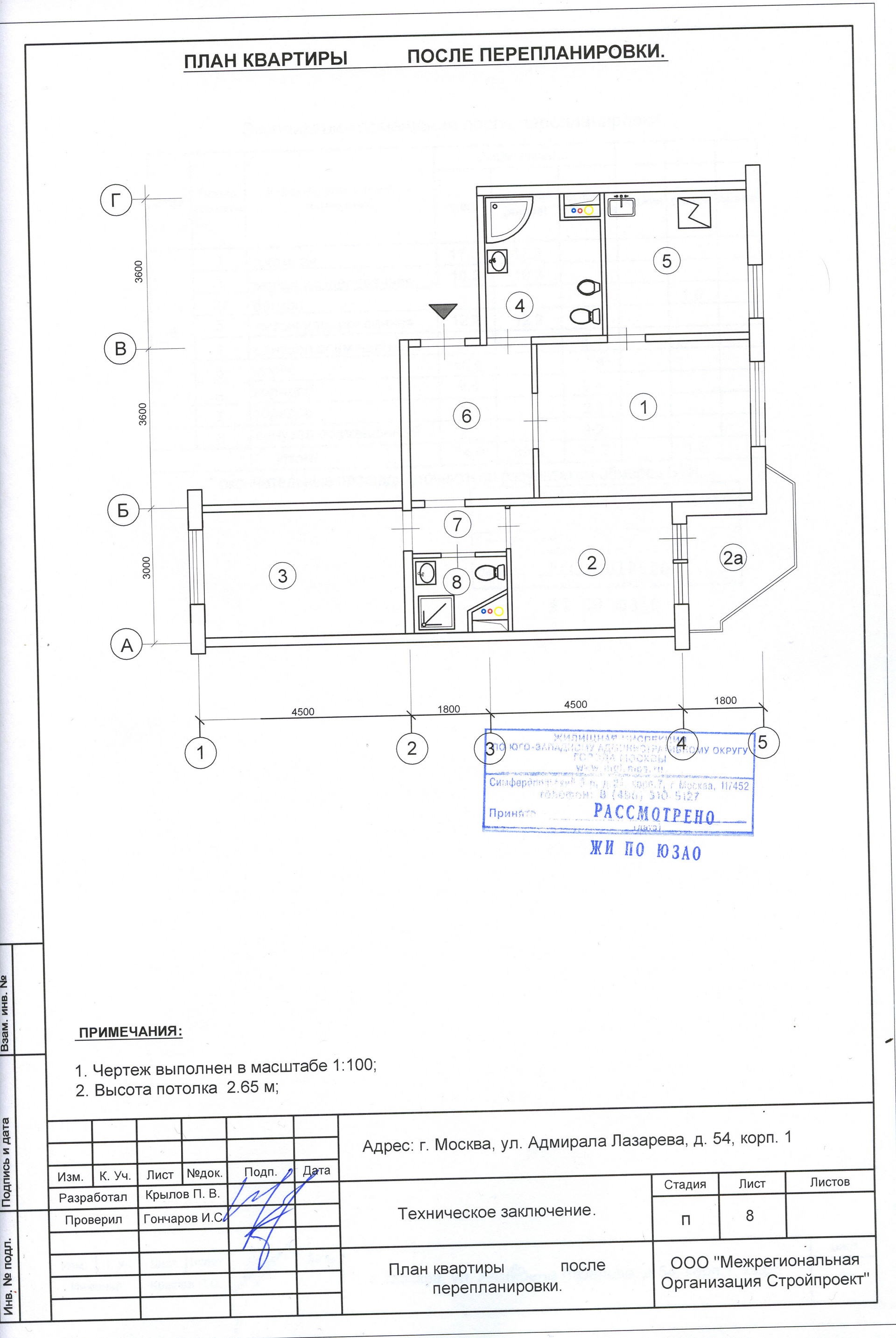 Высота потолков 2.65 м