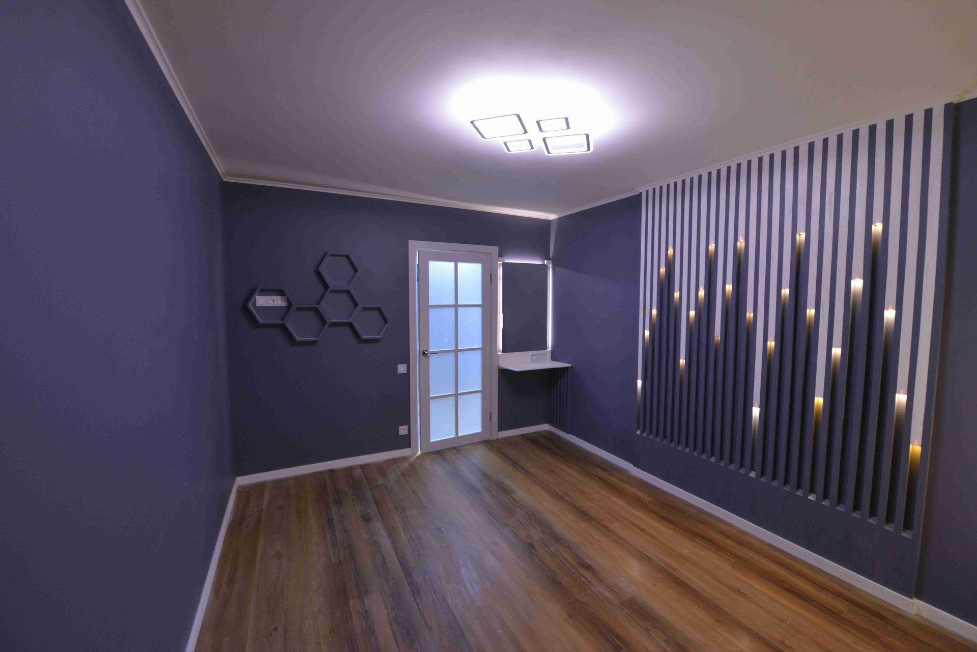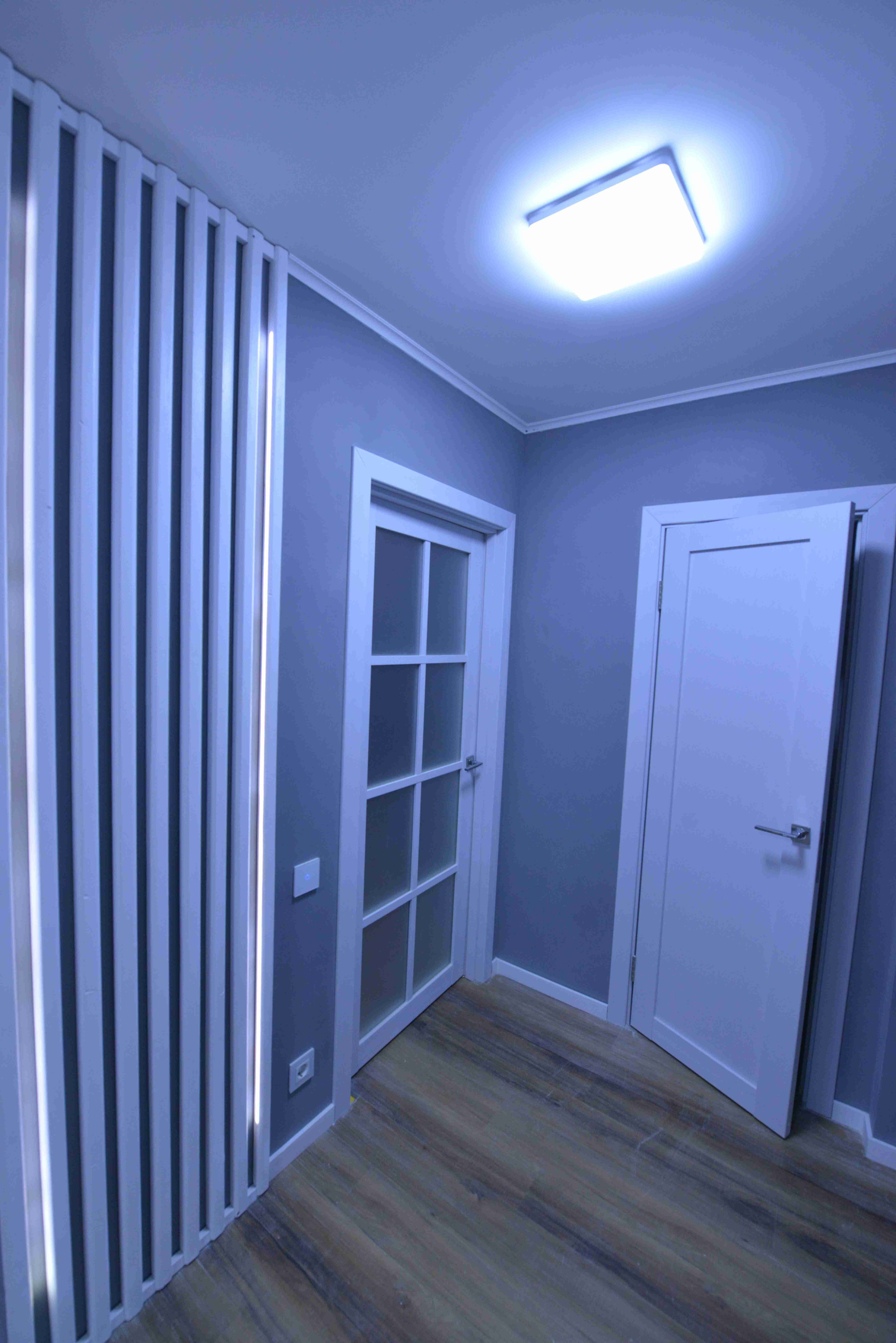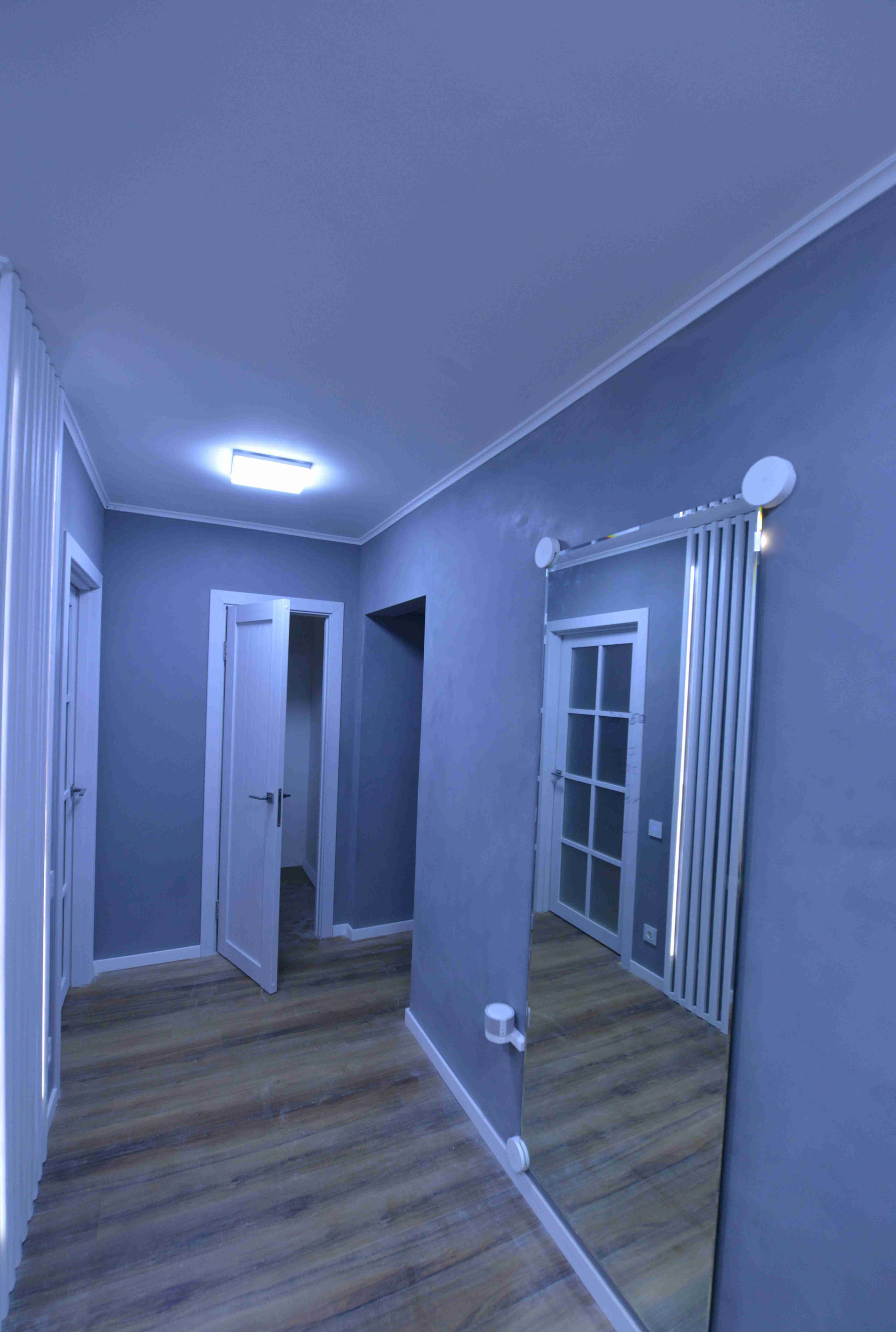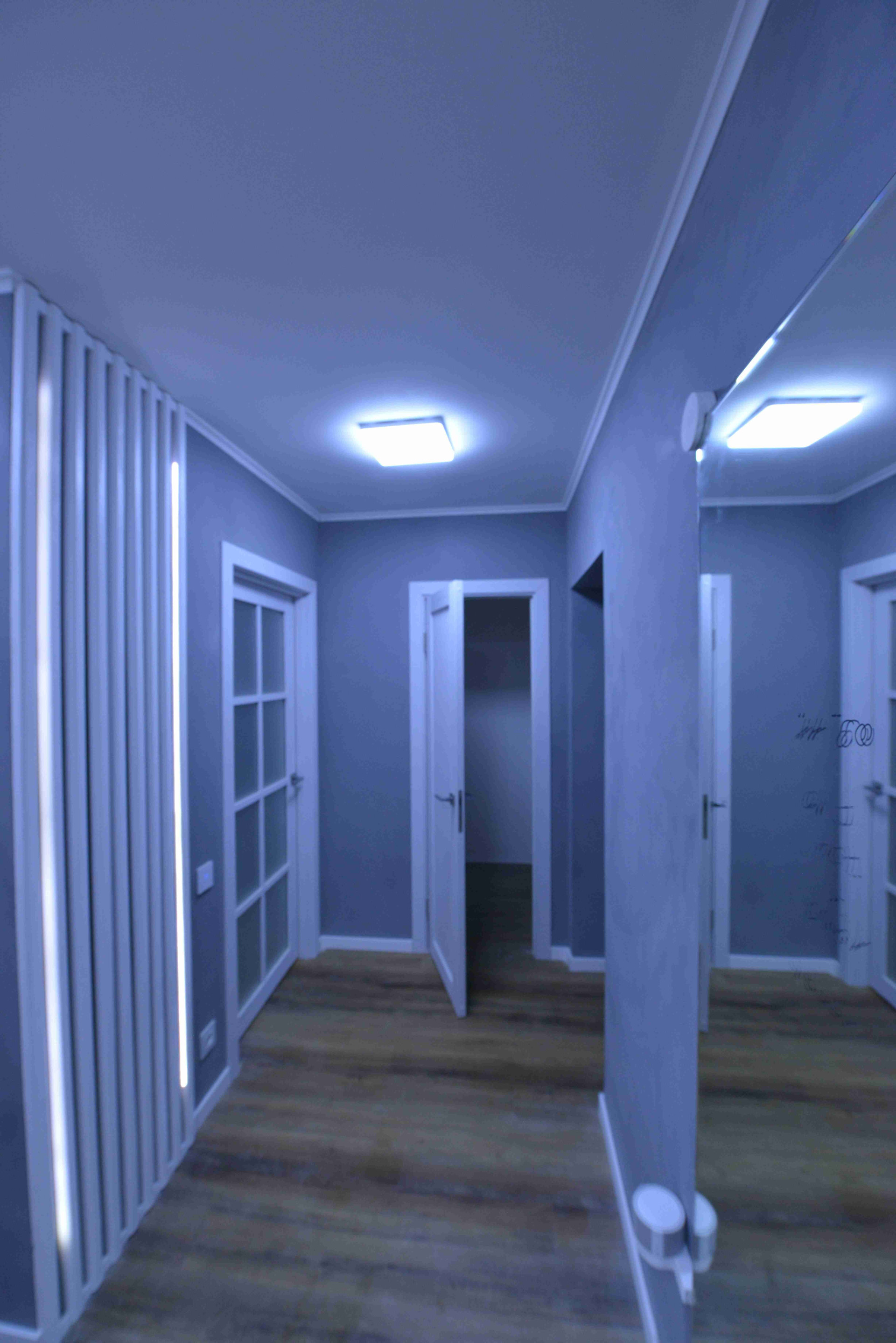 - полная замена электрики, современный электрощит с автоматами и защитой от перепадов напряжения, несколько сценариев освещения в каждом помещении;