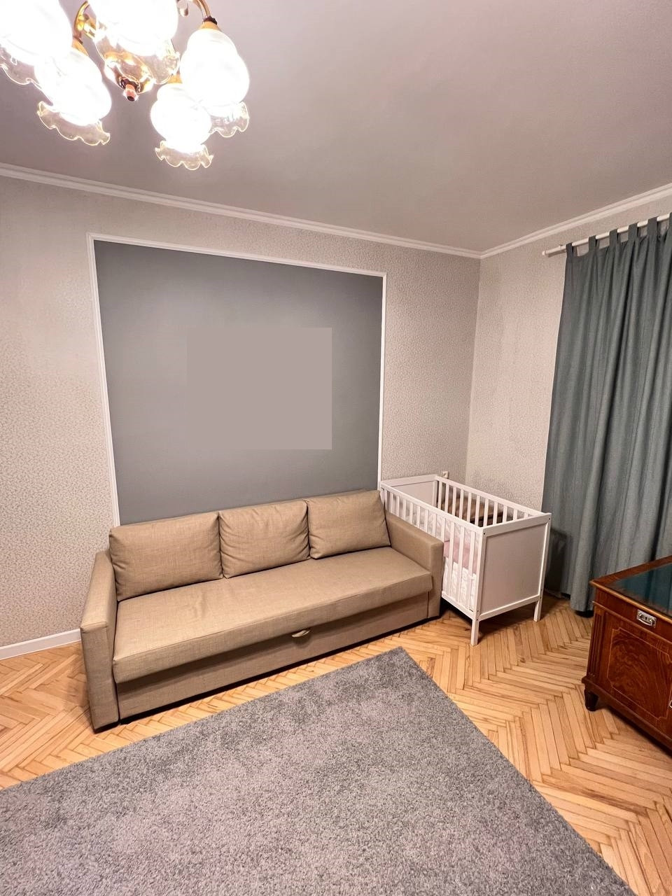 Квартира в сталинском доме с высокими потолками, толстыми кирпичными стенами и ж/б перекрытиями. Строился для работников ВЦСПС и СовМина. Закрытый, очень зелёный и уютный двор с ограниченной системой доступа.