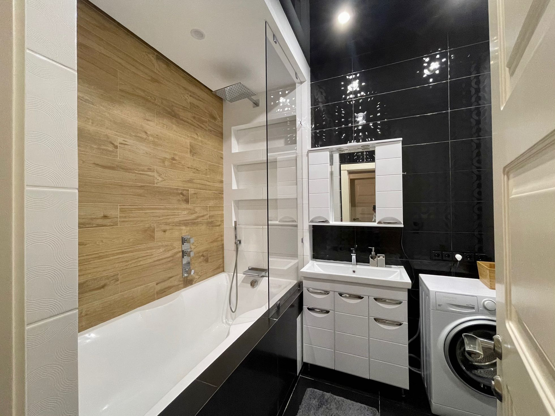 Санузел 1 - ванная, раковина с зеркалом, стиральная машина, водонагреватель