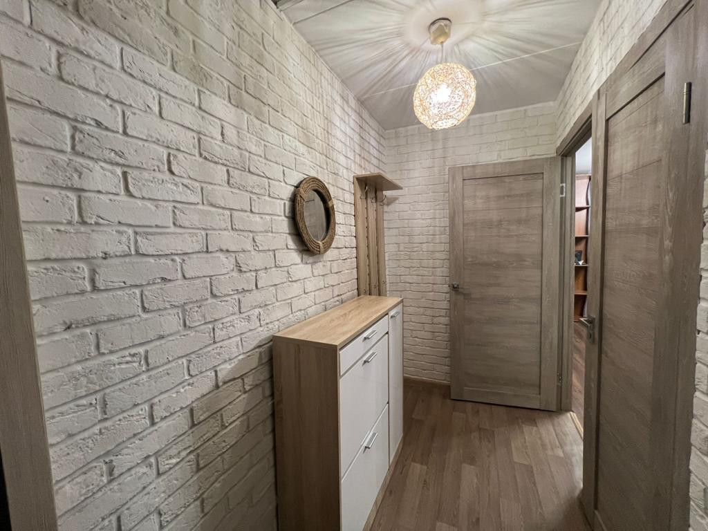 В квартире сделан ремонт в 2022 году, окна ПВХ, ламинат, произведена замена дверей, в том числе входной металлической двери, сантехники; квартира продается со встроенной кухней, новой мебелью, бытовой техникой.