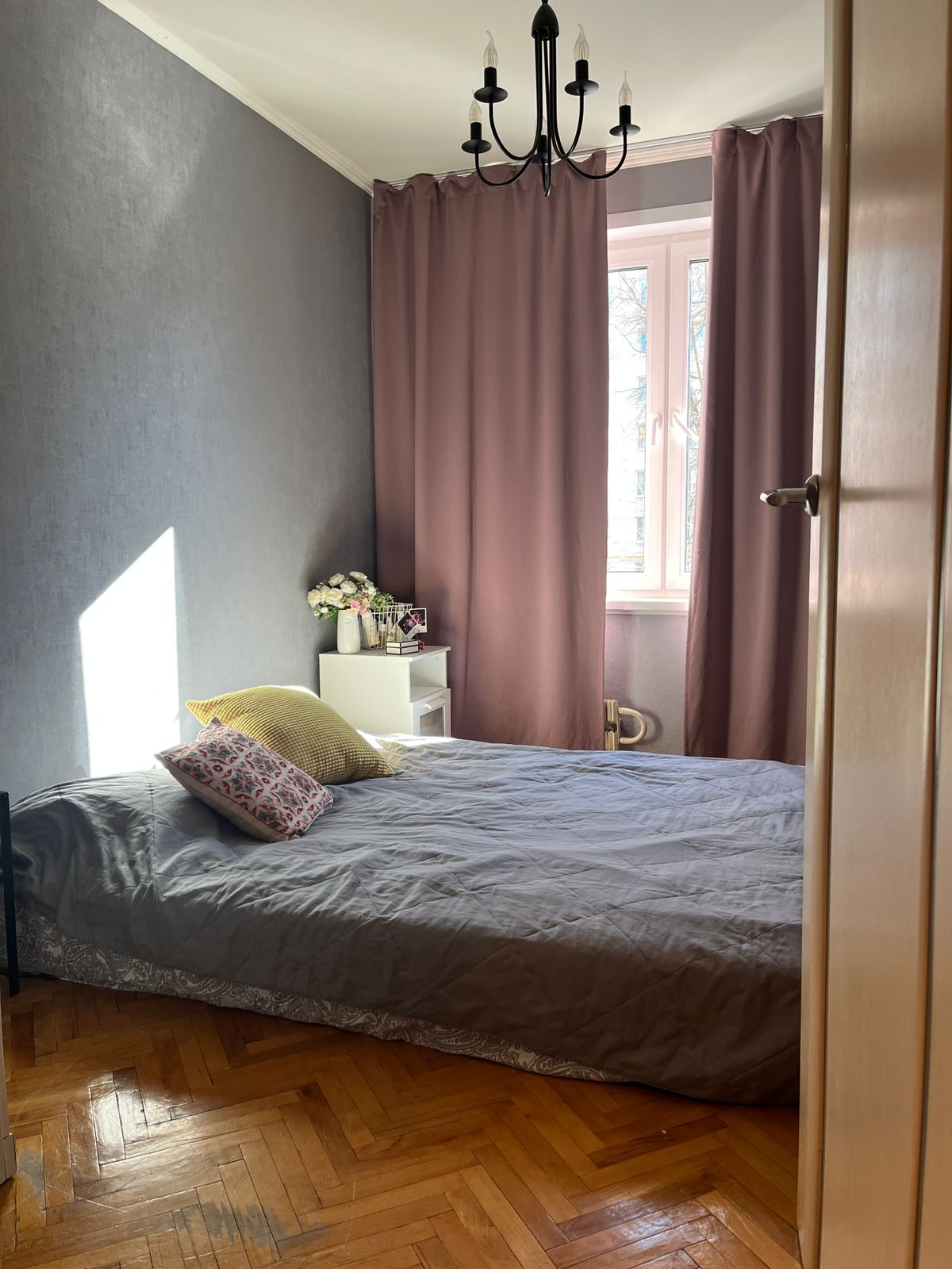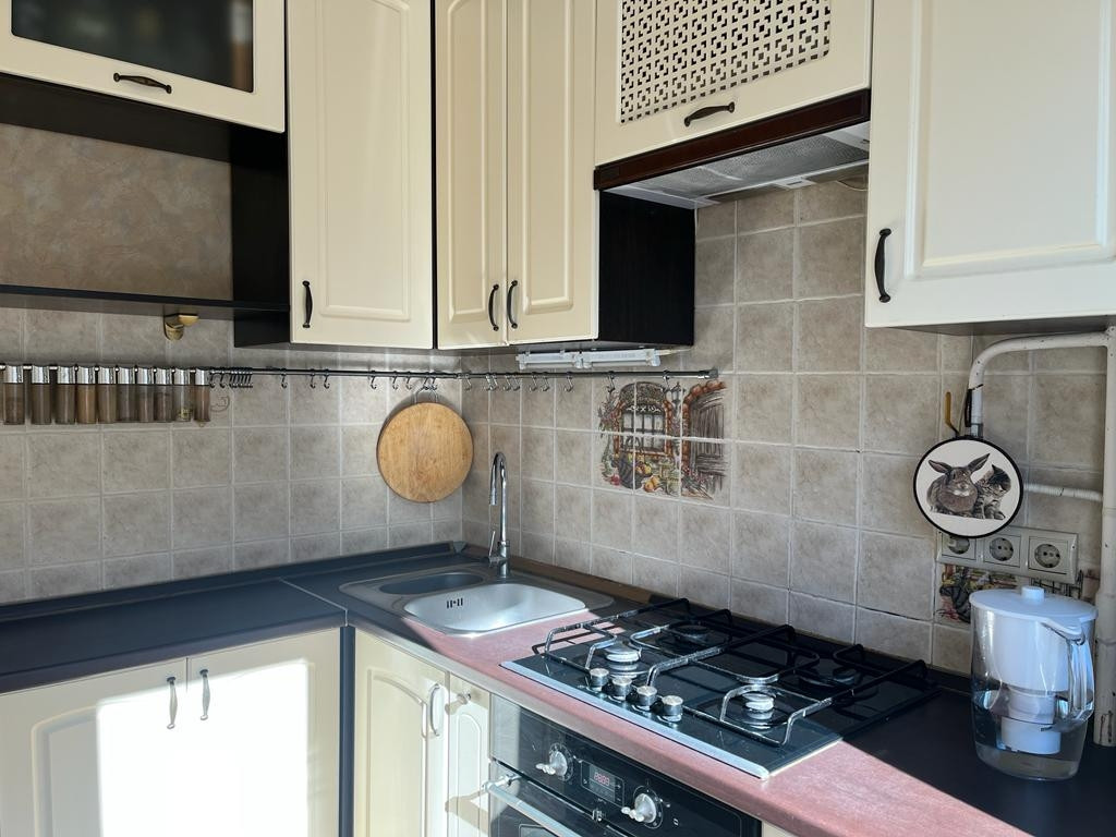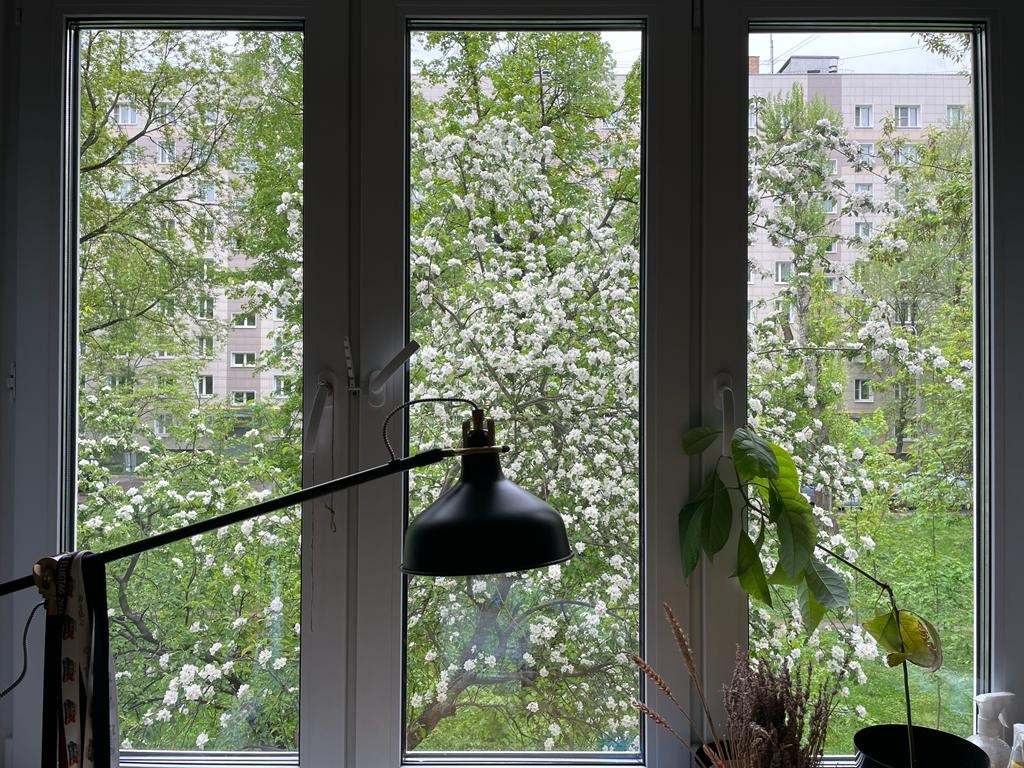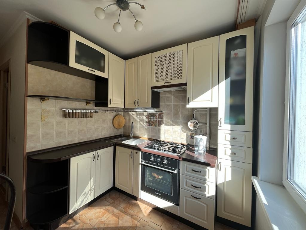 Очень светлая (западная сторона). Не угловая, теплая, хорошая шумоизоляция. Комнаты изолированные. Все виды в тихий во двор на яблоневые деревья. Недавно установлены качественные стеклопакеты. Кухонный гарнитур со встроенной техникой, мебель в ванной, частично мебель в комнатах входят в стоимость объекта.