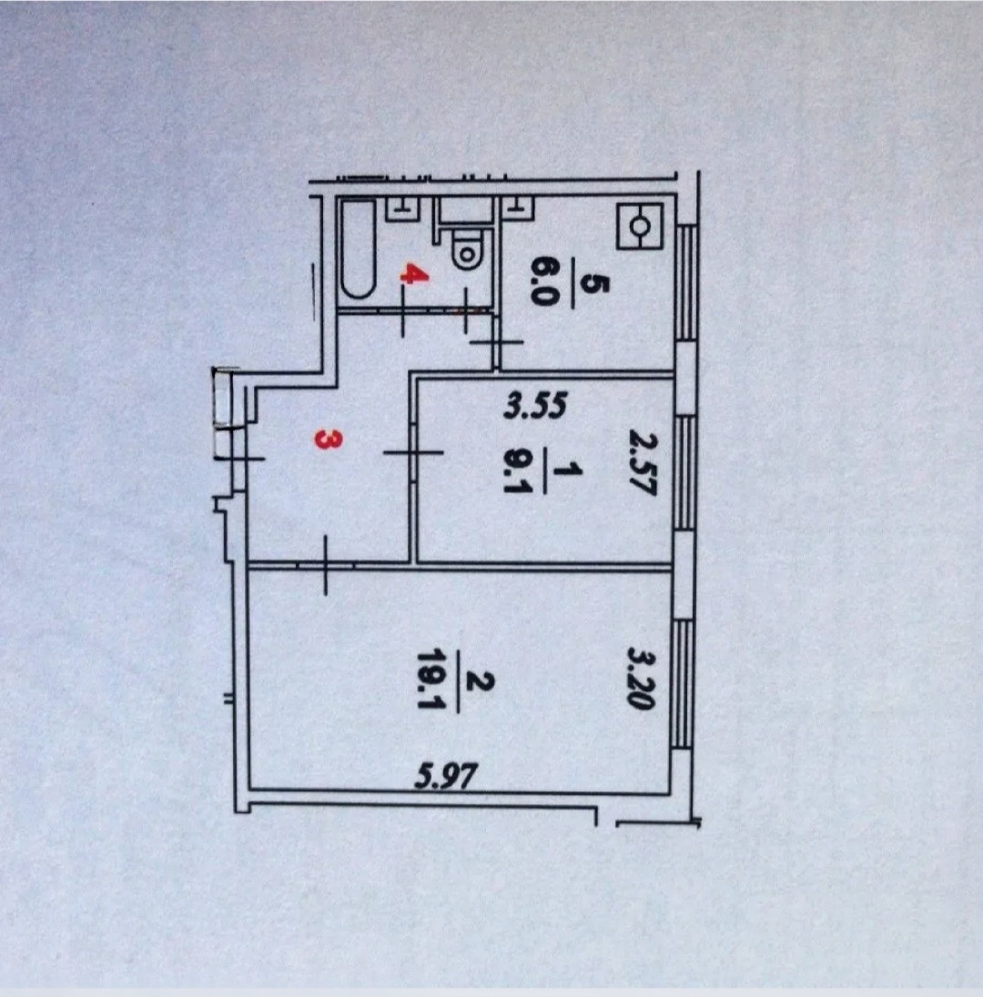 Общая площадь 44.3 м2