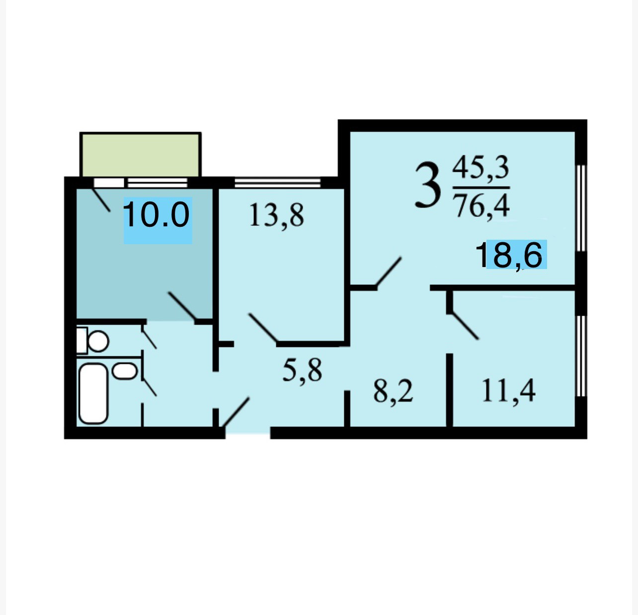 Общая площадь 76.4 м2
